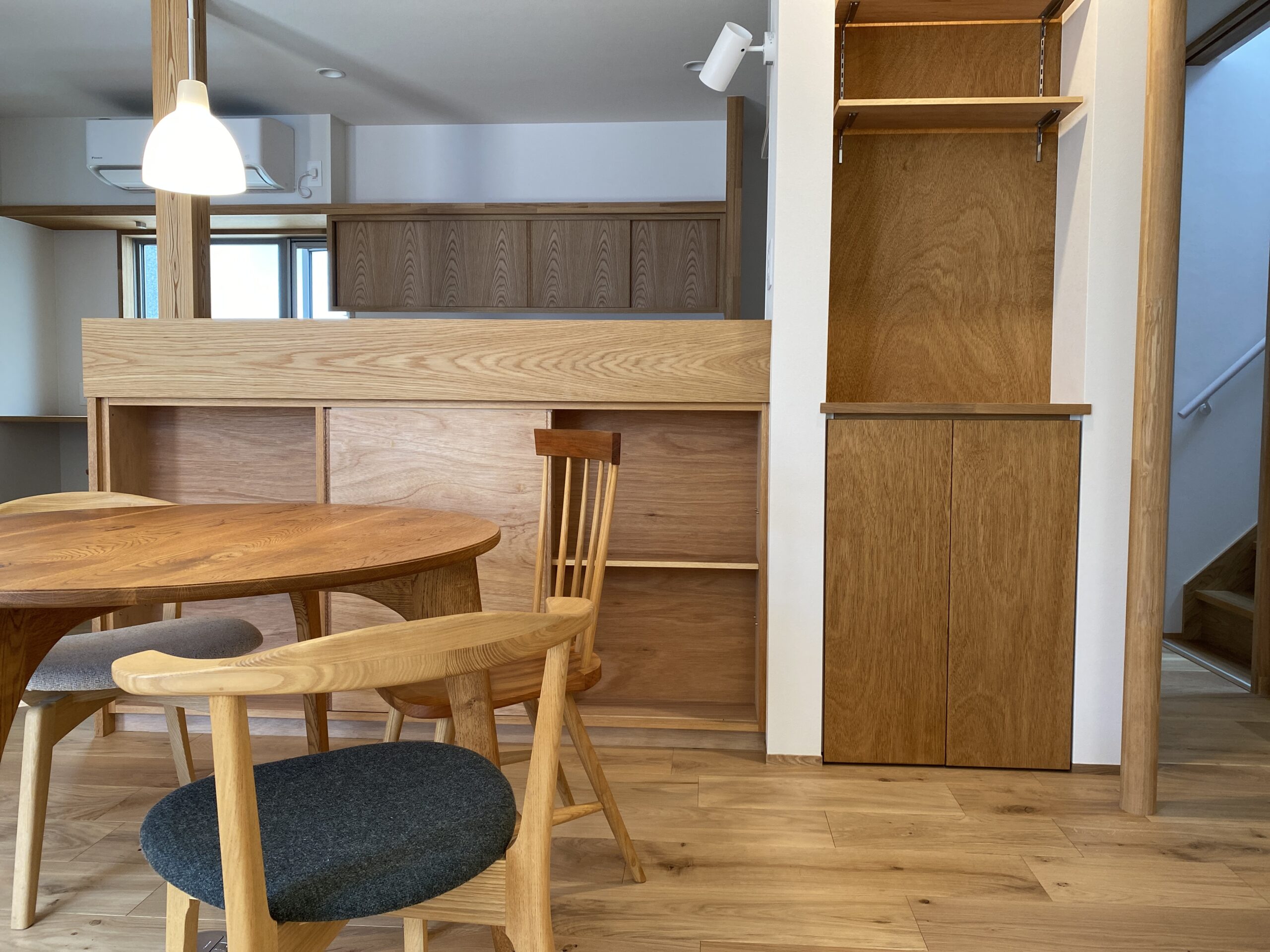 さらにキッチンとダイニングの間に収納を配置