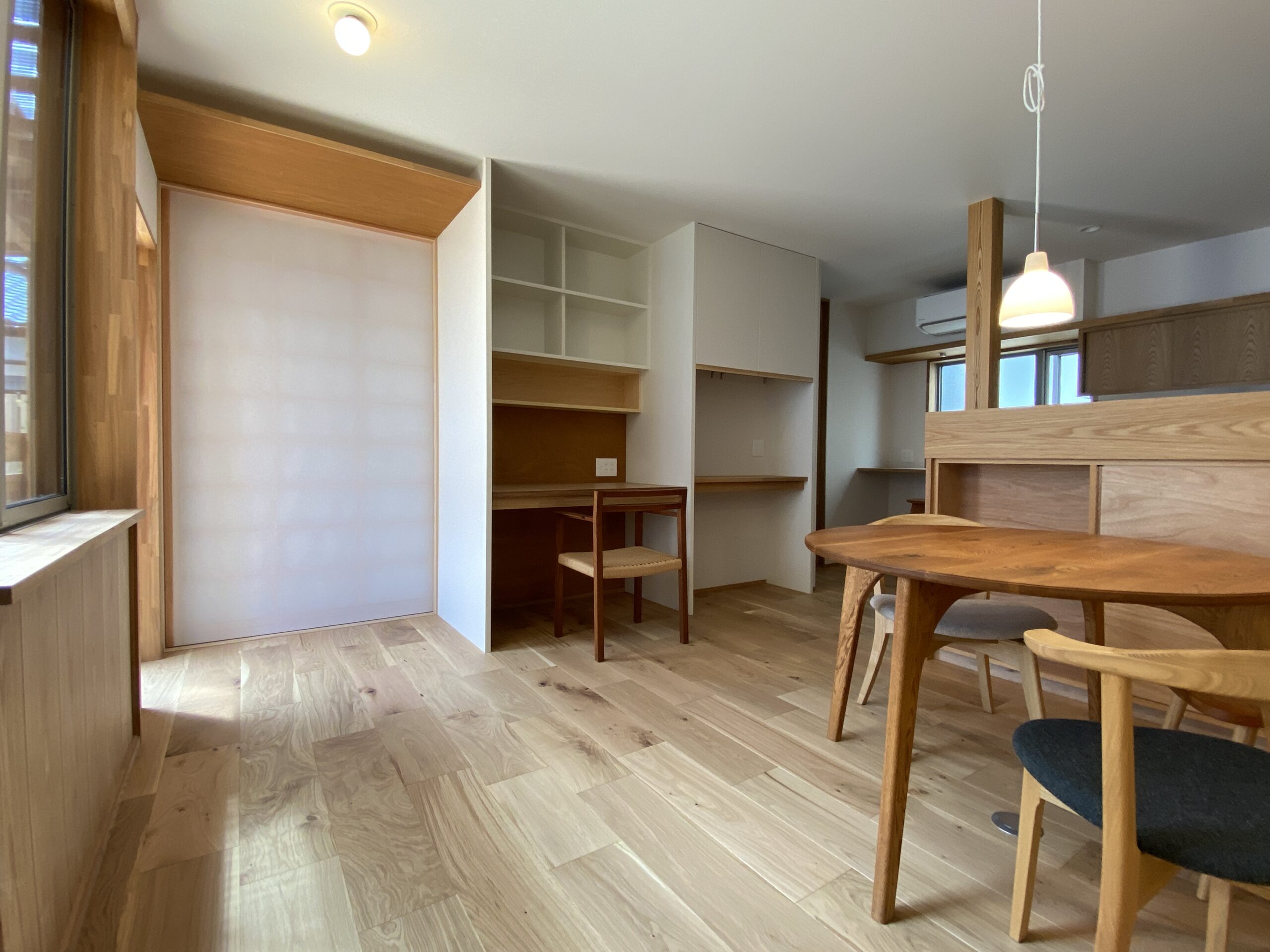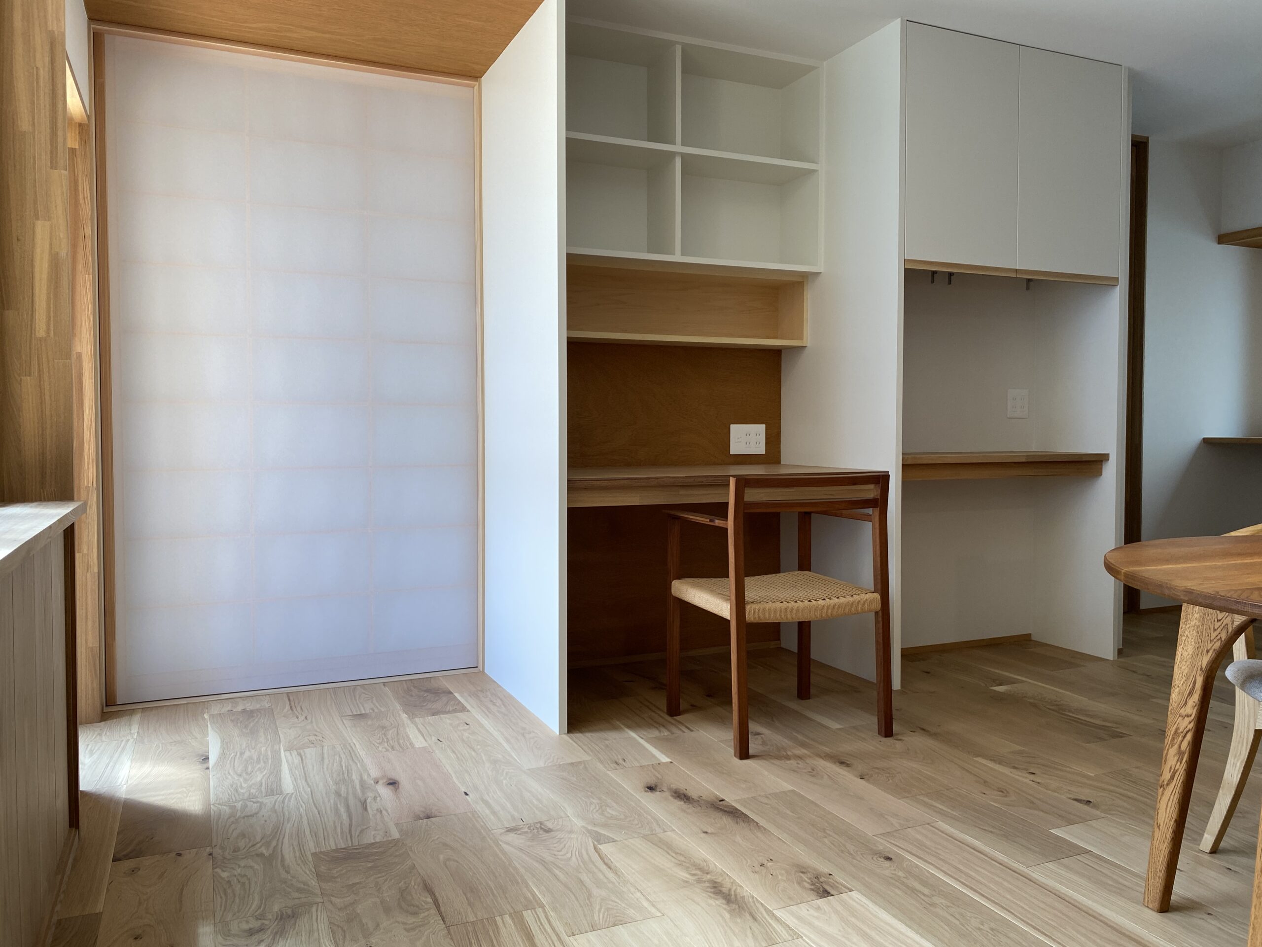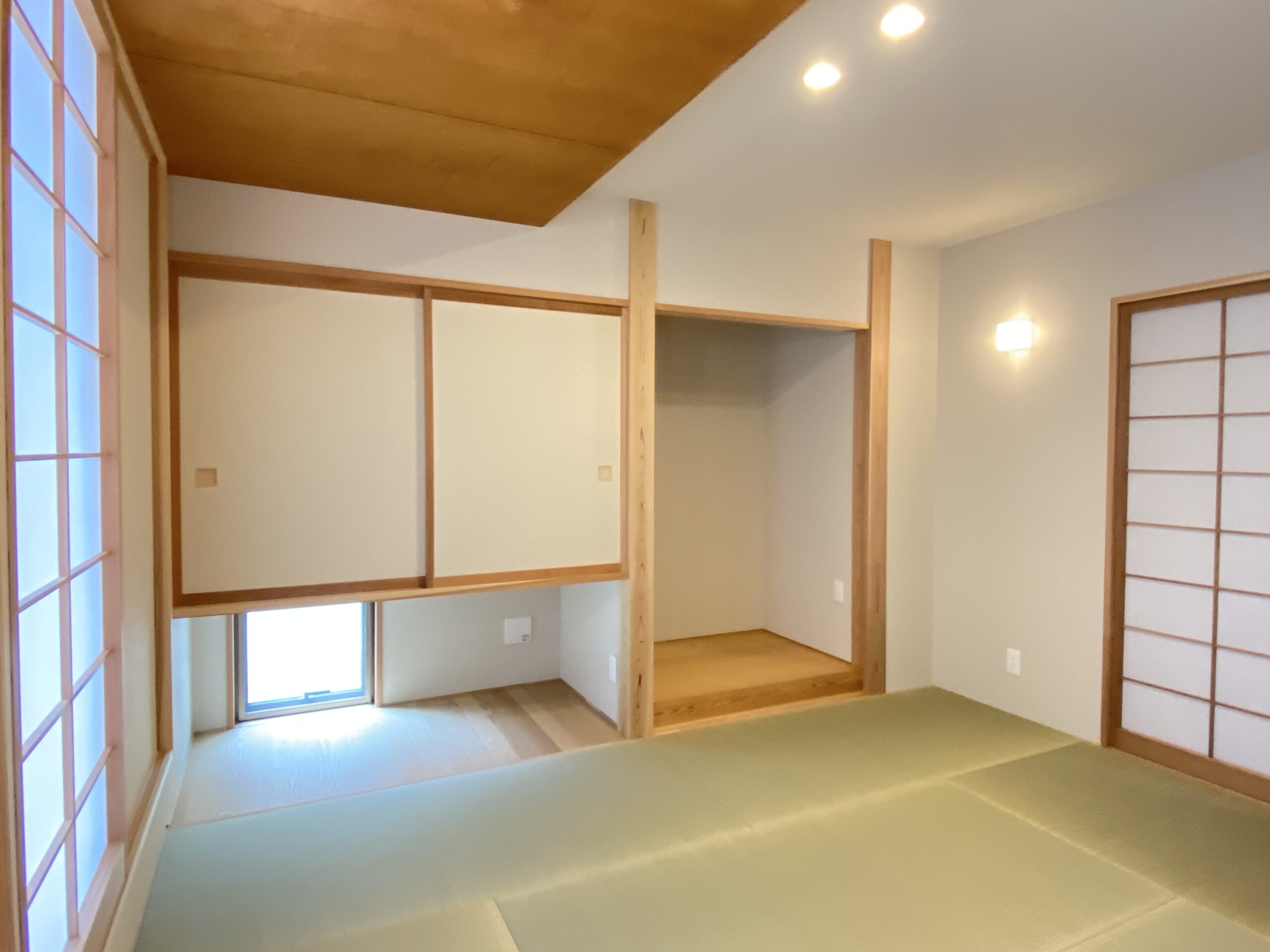 障子を開けたら天井が一段下がって同じ素材でつながってるのよ