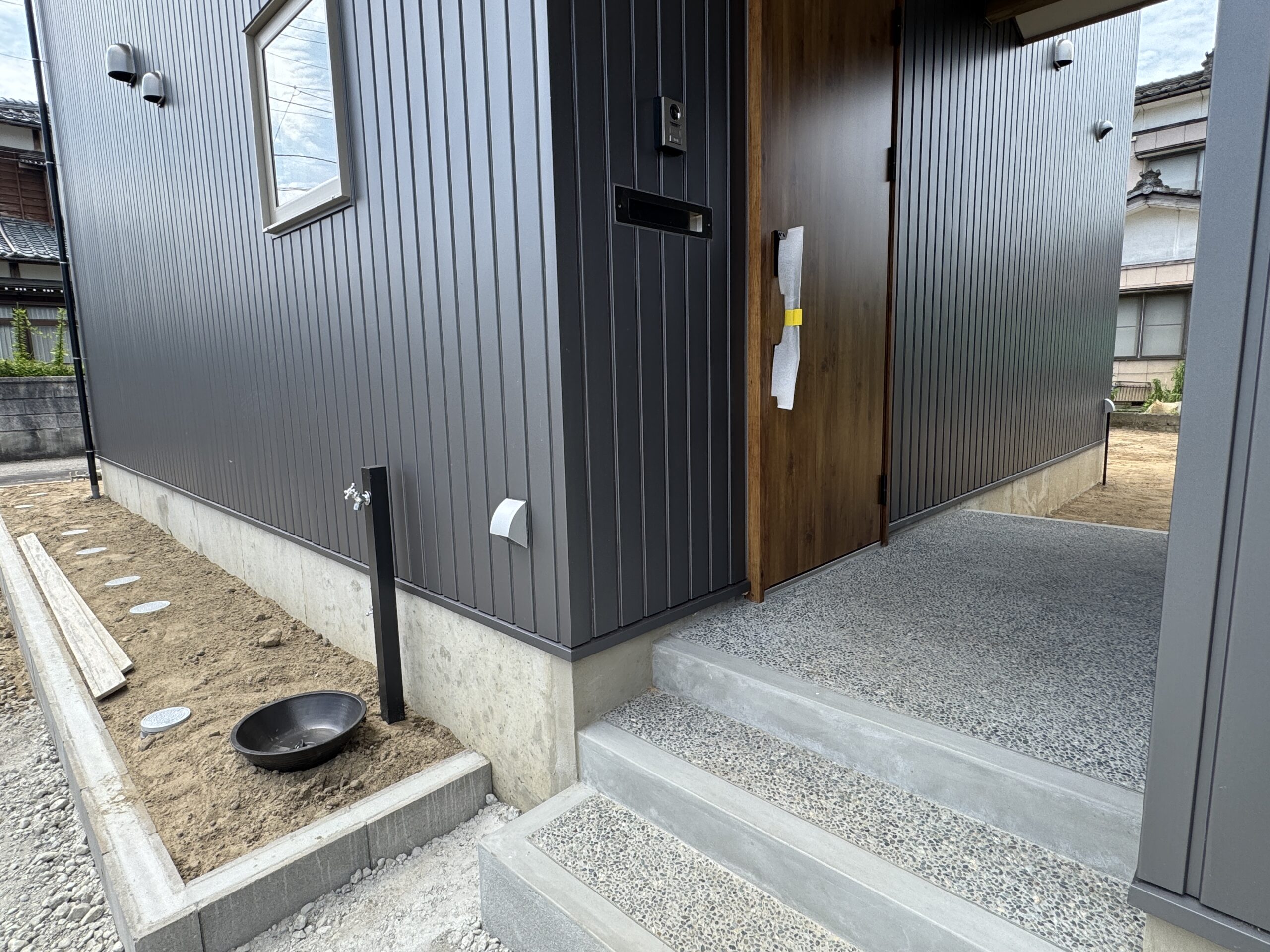玄関は、熊木建築事務所さんらしい洗い出しの土間。