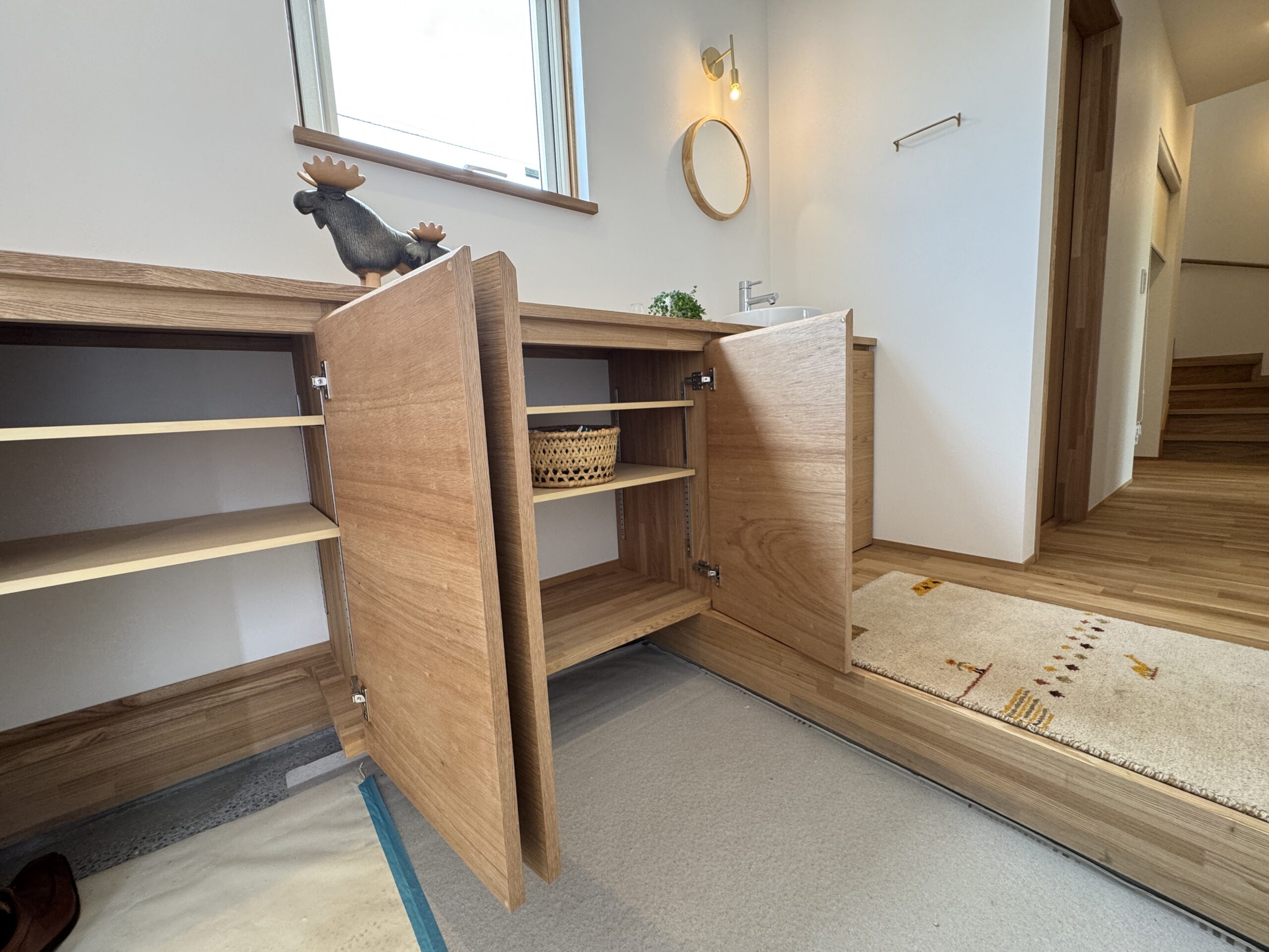 しかも、長~いシューズボックスは造作で、下部に高さがあって長靴やブーツも楽々収納できちゃう。