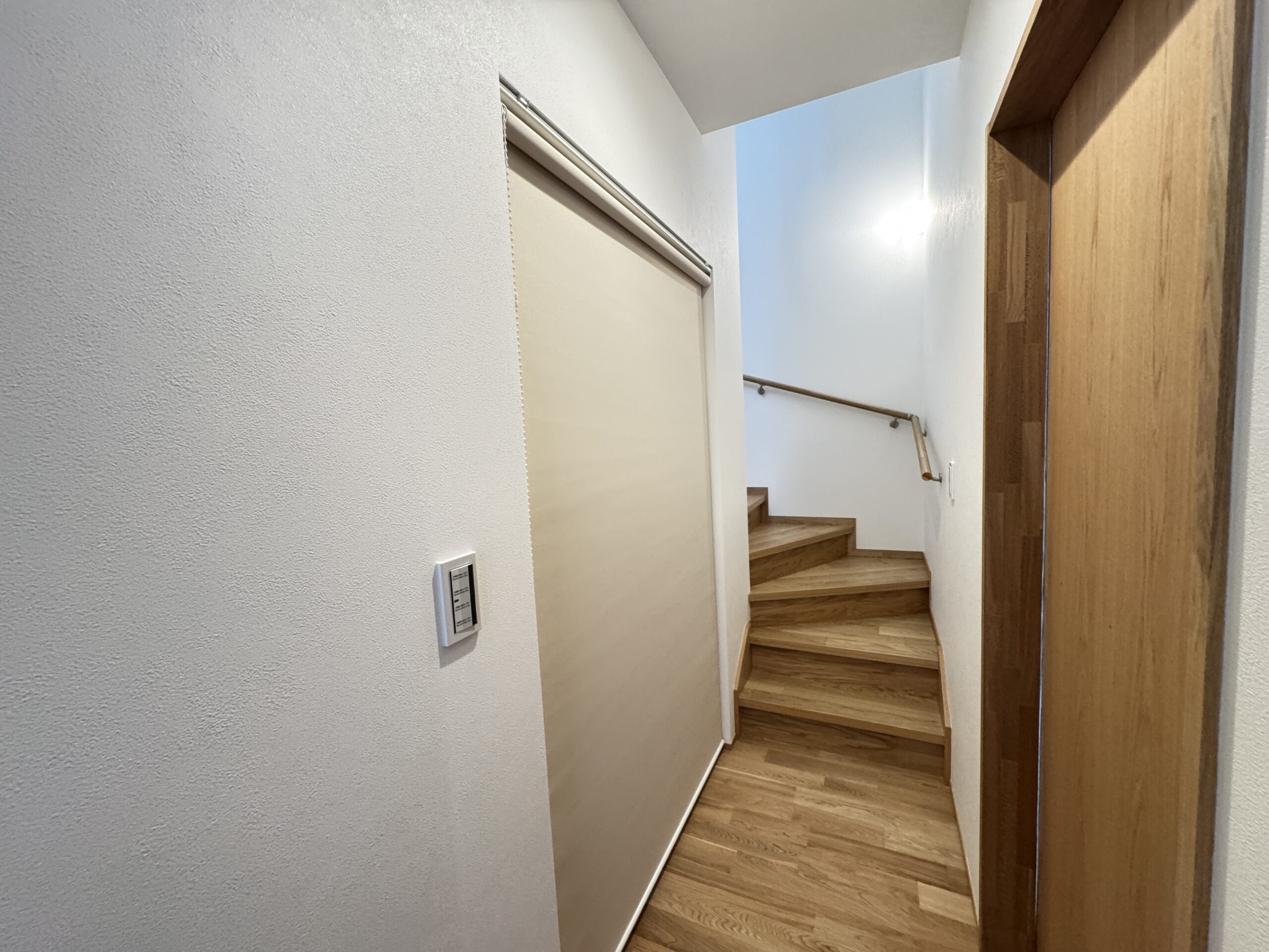 床材は無垢じゃなく、コスト抑えめな素材にしてて1階にしっかり予算を集中投下した設計。