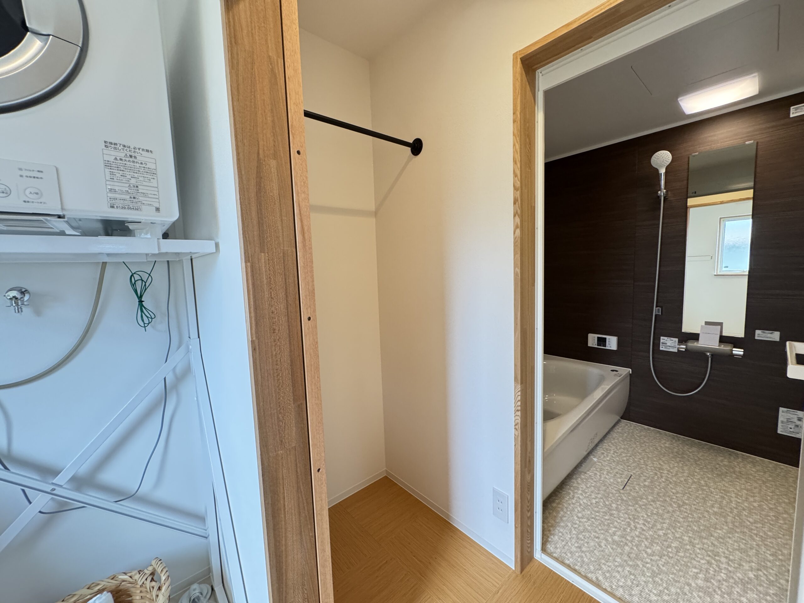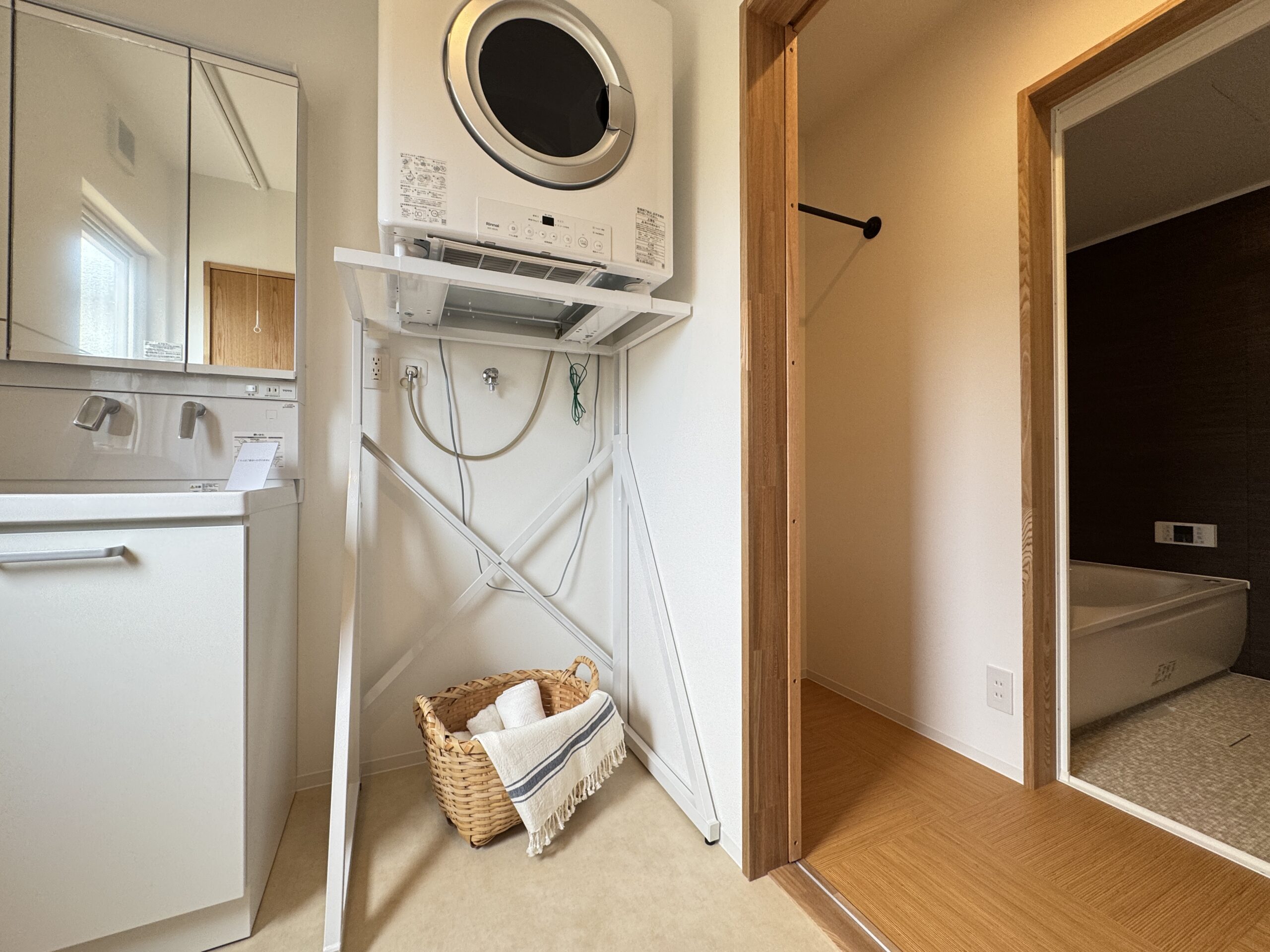 ダイニングの奥に洗面→脱衣室→浴室とつながる王道動線。