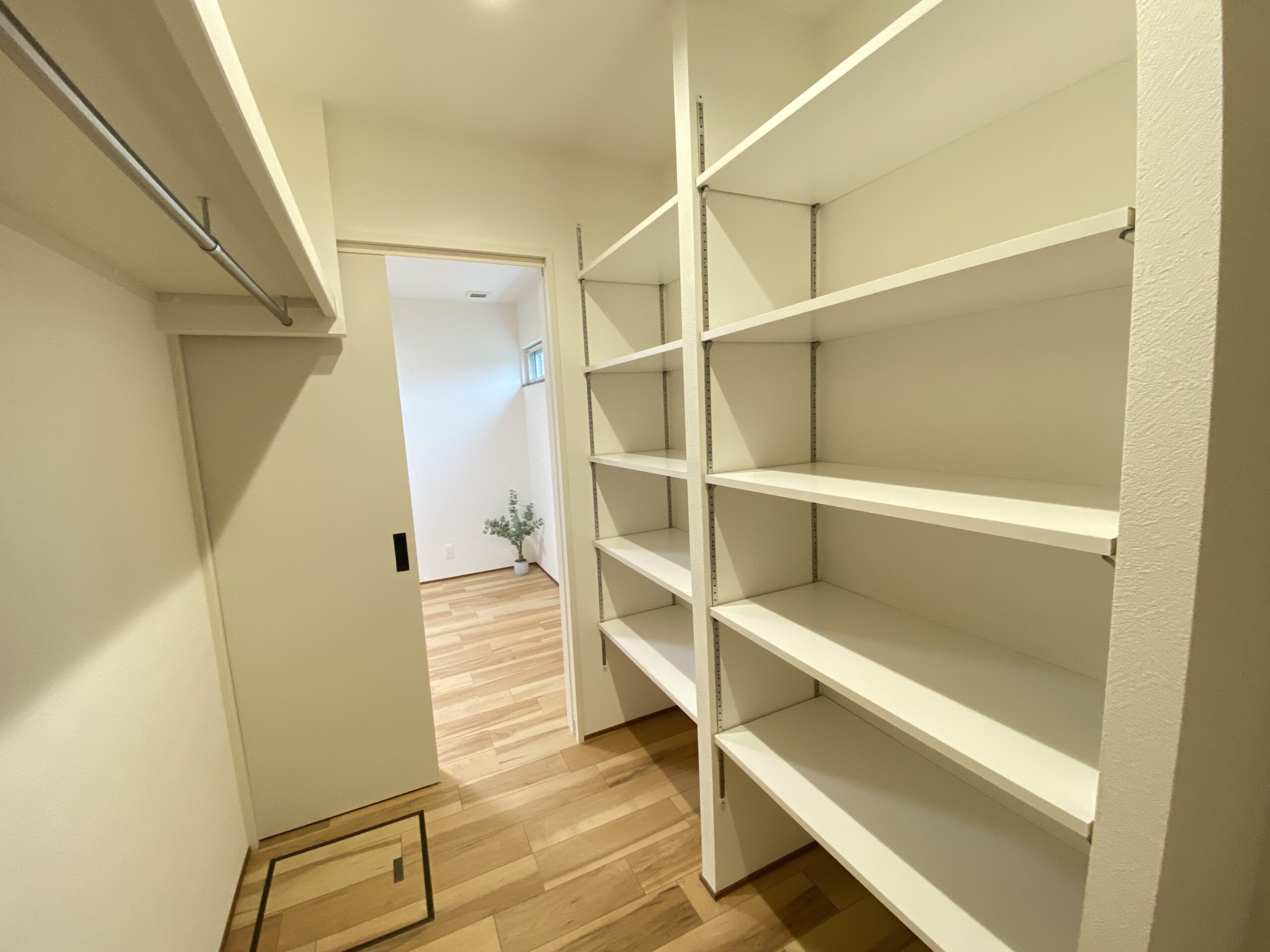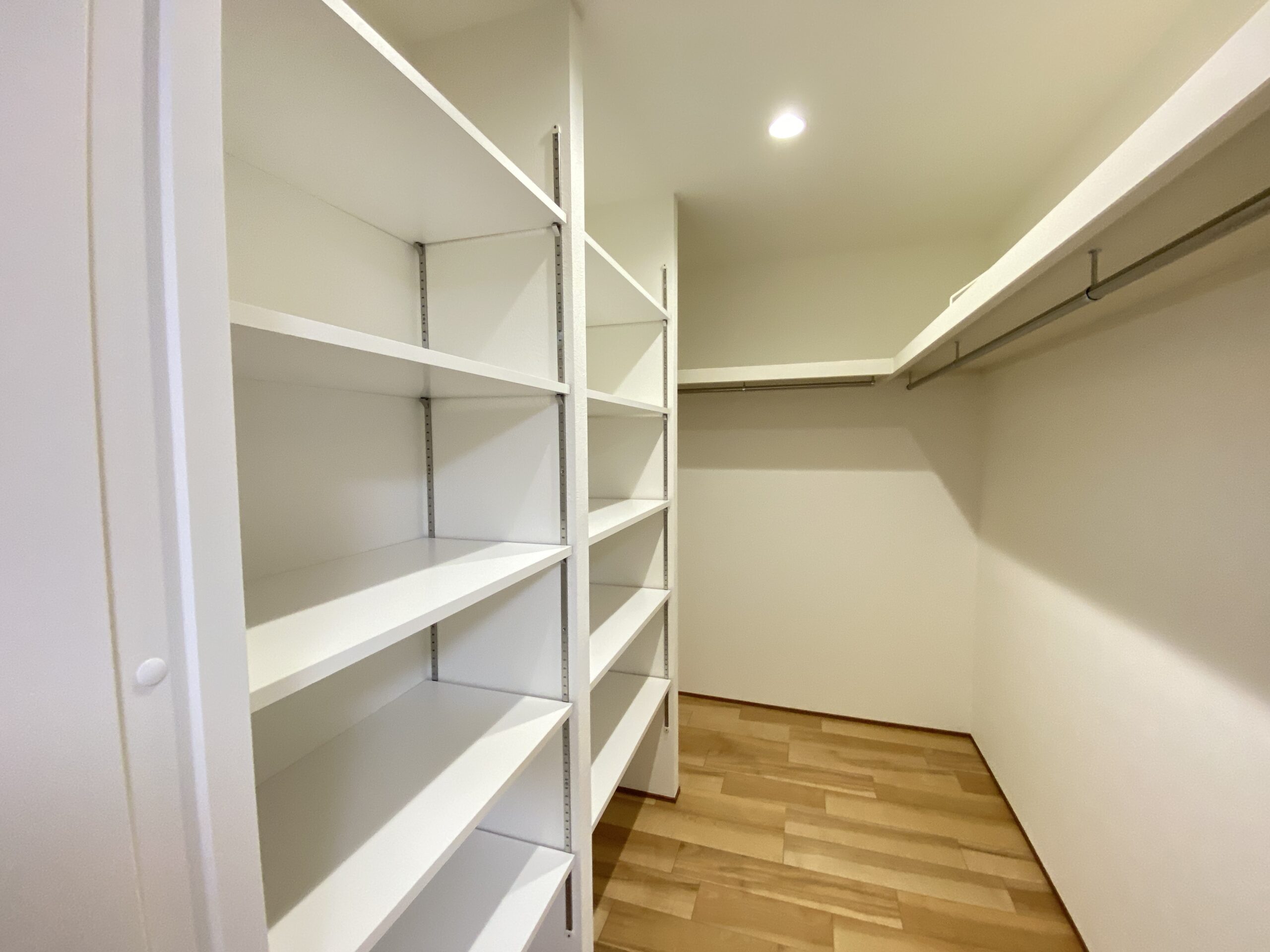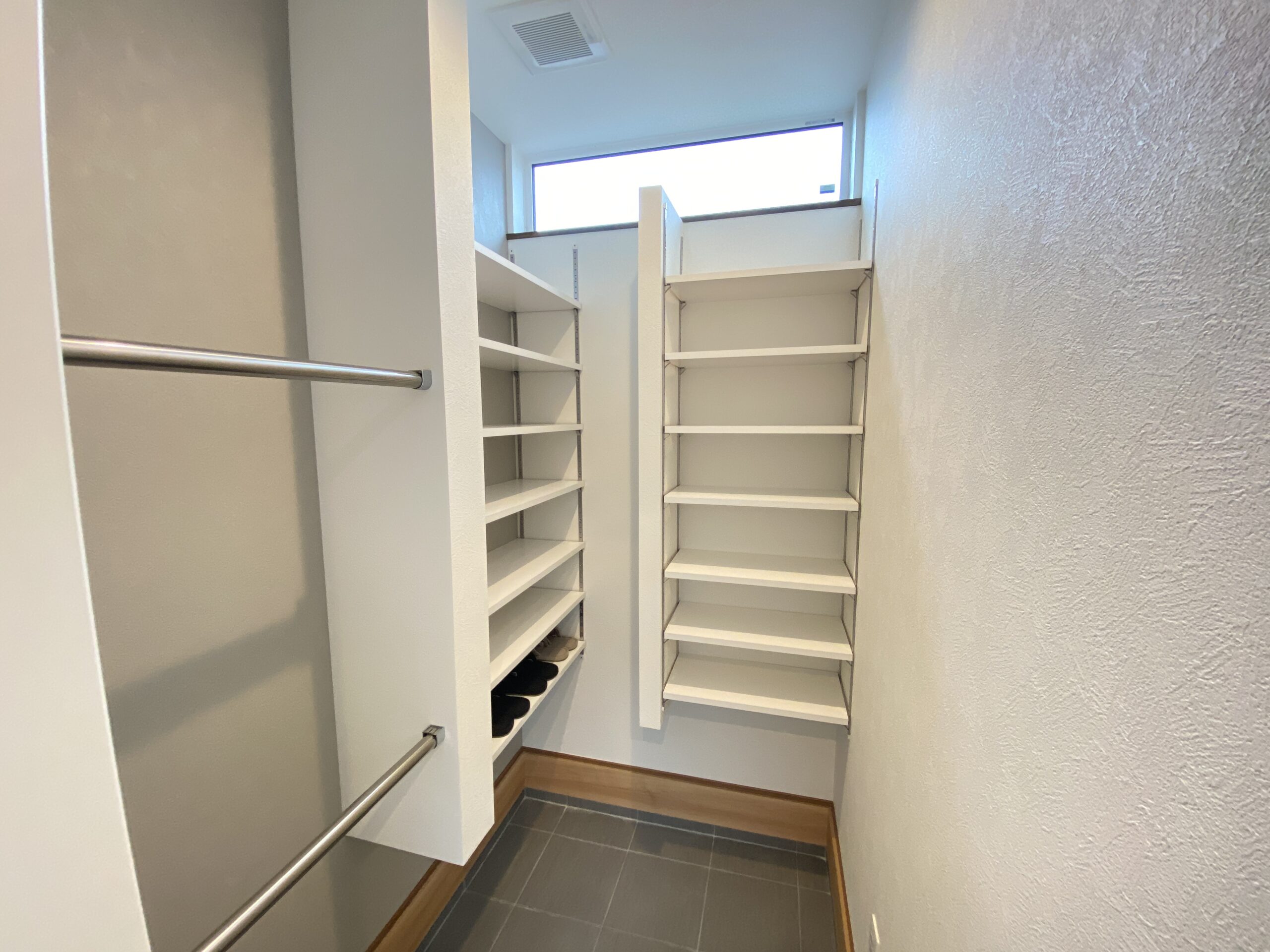 ハンガーパイプはL字についてて、床から天井まで可動棚がズド―ン!