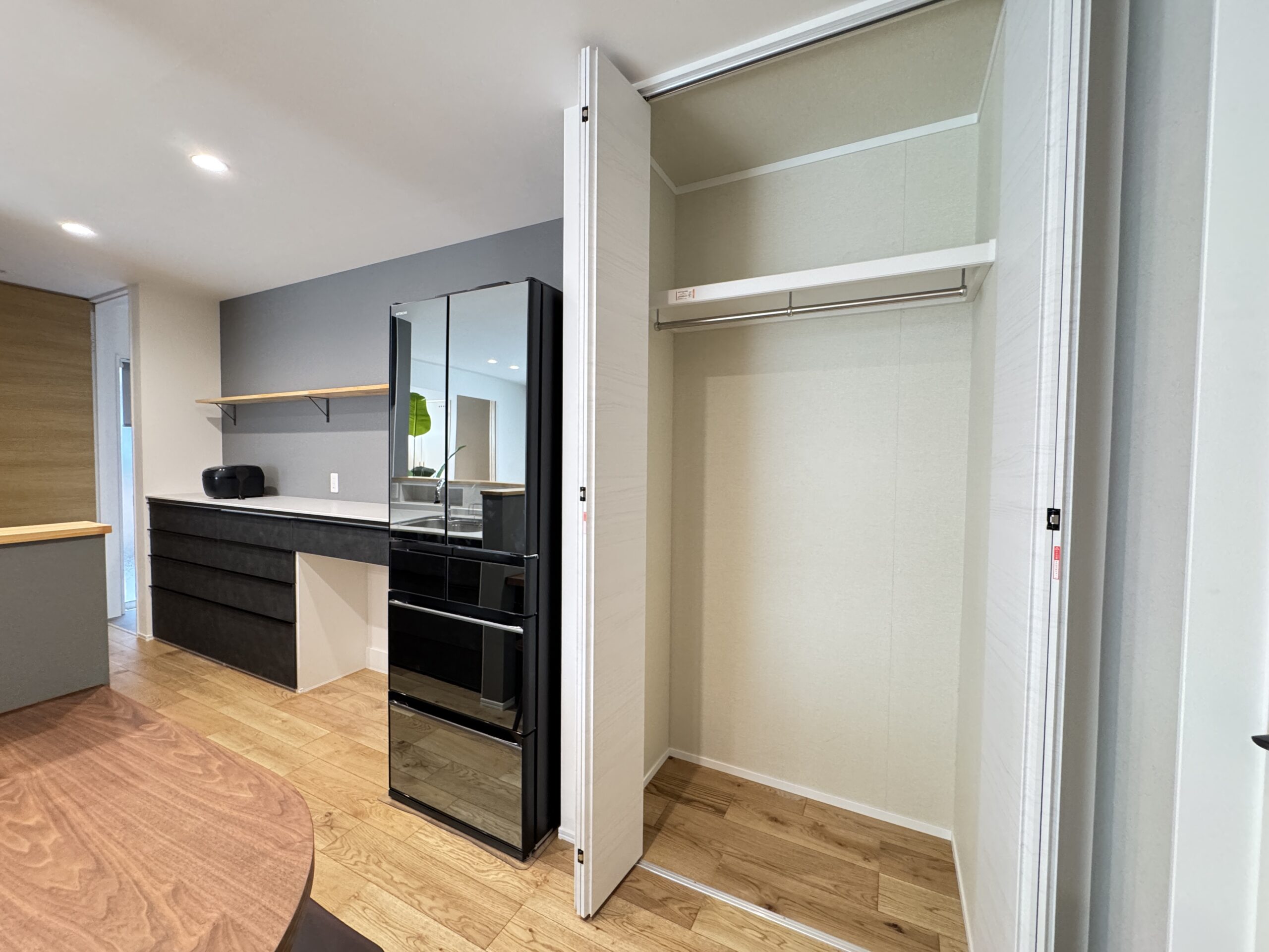 例えばね、ダイニングの奥にもクローゼットがあったのよ。ハンガーパイプがあるから、コートとかバッグとか、サッとしまえるの。