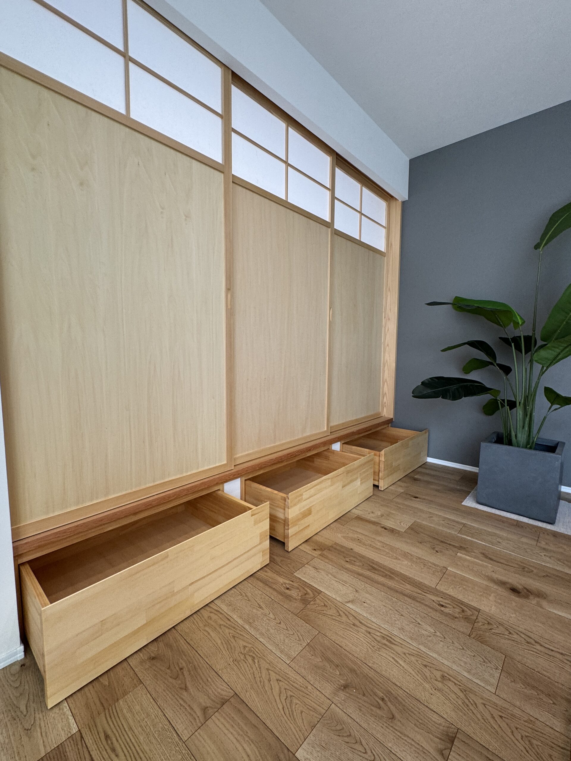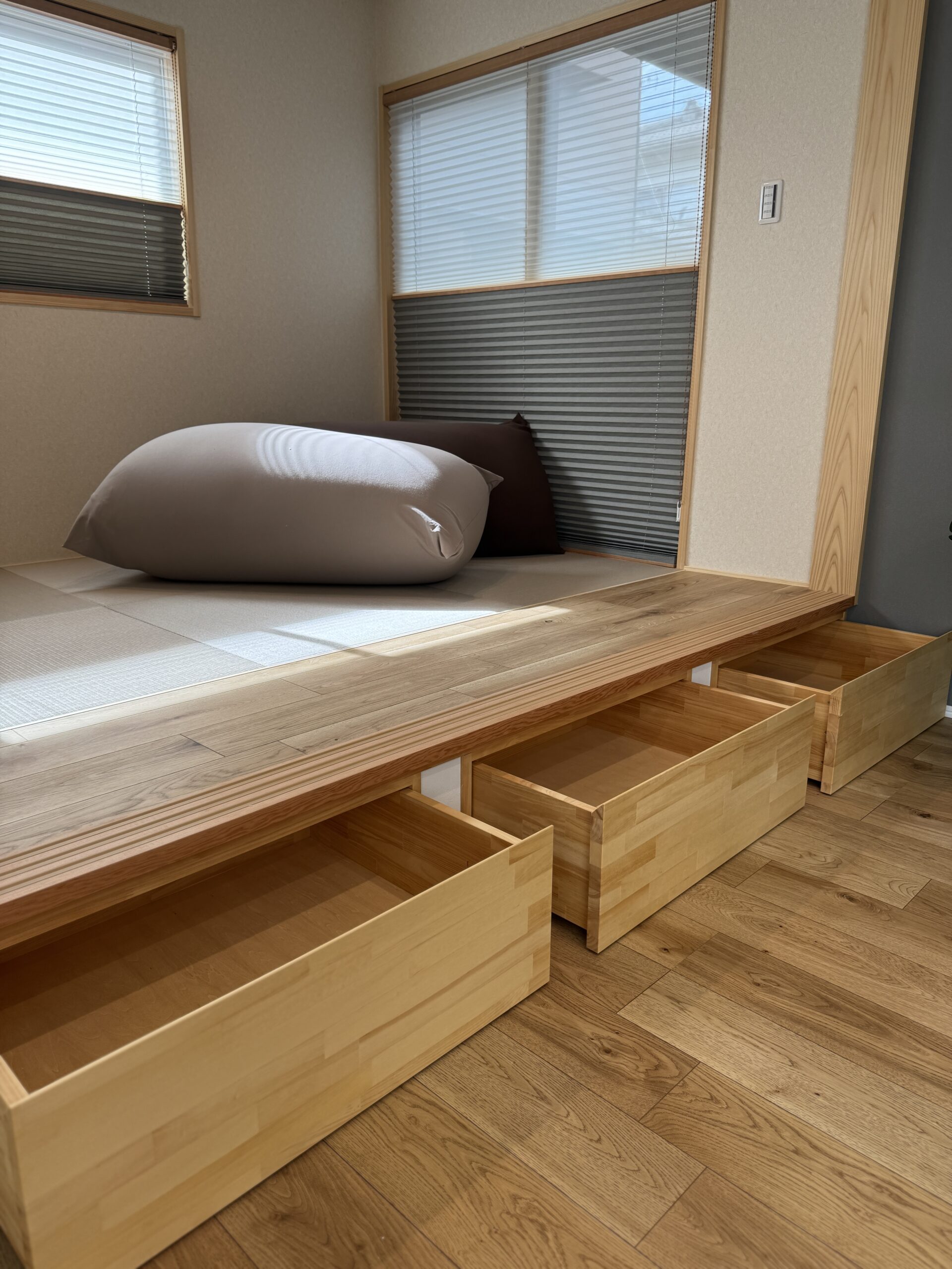 ただの畳ではなく、「板畳」っていうちょっと特殊なタイプなんだって。そのためフローリングとの繋がりも自然で、洋室にも和室にも馴染むのよ。さらにね、畳の下が収納になってるの!