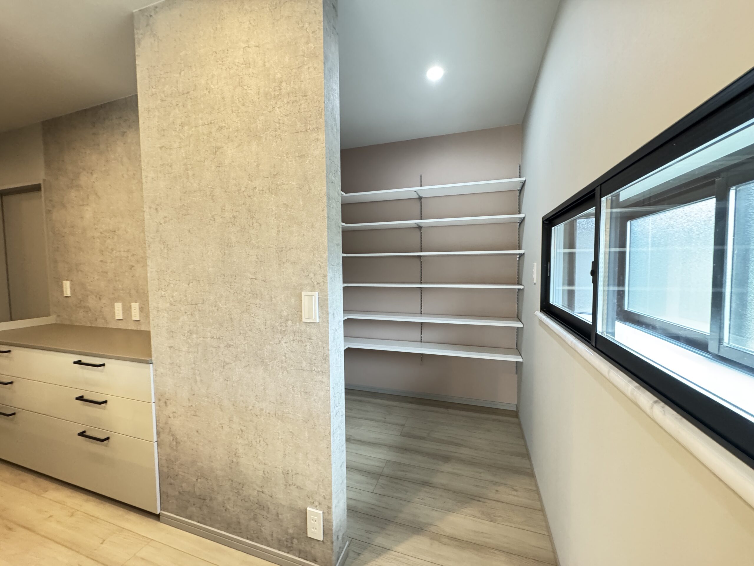 キッチンの奥にも、これまた巨大なパントリー&収納スペースが。