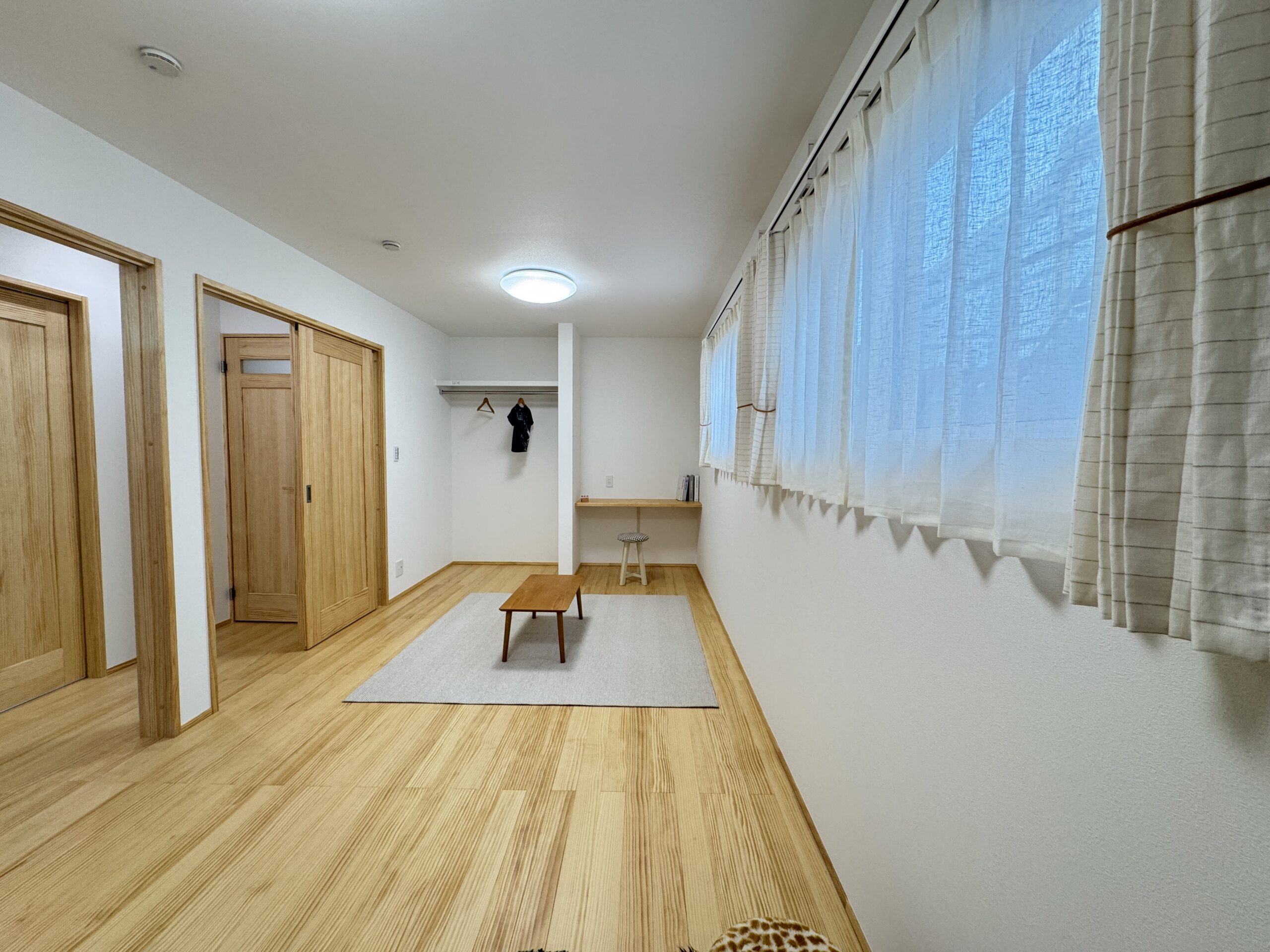 子供部屋は、最初から壁で仕切らないのがスミコ流の正解です。なぜなら、子供が小さいうちは大きな遊び場として使えるから!成長に合わせて、後から家具や間仕切り壁で分ける方が柔軟に対応できるよ。もし将来、子供が家を出た後は、また広い1部屋に戻して趣味の部屋にできます。笑