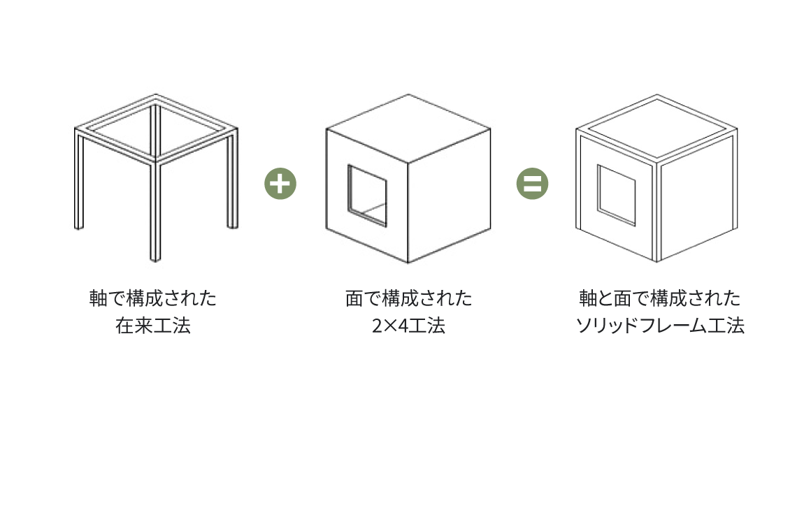 これ、要するに日本の伝統的な「軸組工法(自由度が高い)」と、ツーバイフォー工法のような「面構造(頑丈)」の“イイとこ取り”なんです。