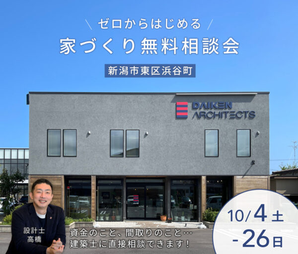 ~10月26日(日) 新潟市東区浜谷町|ゼロからはじめる家づくり相談【DAIKEN ARCHITECTS】建築士に何でも聞ける!